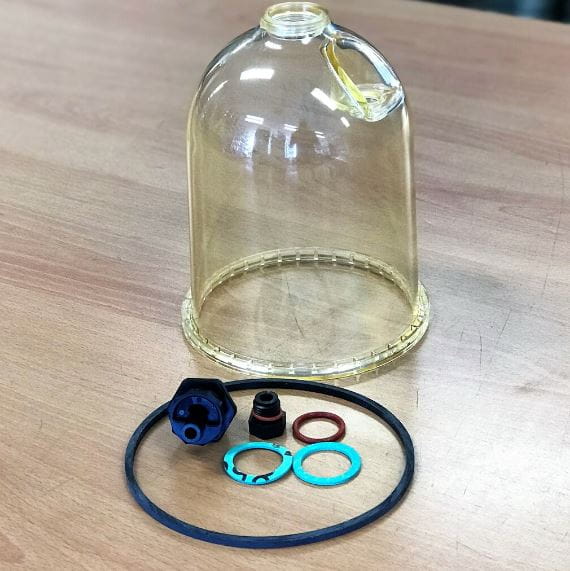 - Zawiera: Clear Bowl, RK11007 Bowl Gasket, RK 20126 Plastic Bowl Plug Kit (MA), 11041 Drain Gasket, RK 30488 Self-Vent Drain Valve, 23145 Drain o-ring.